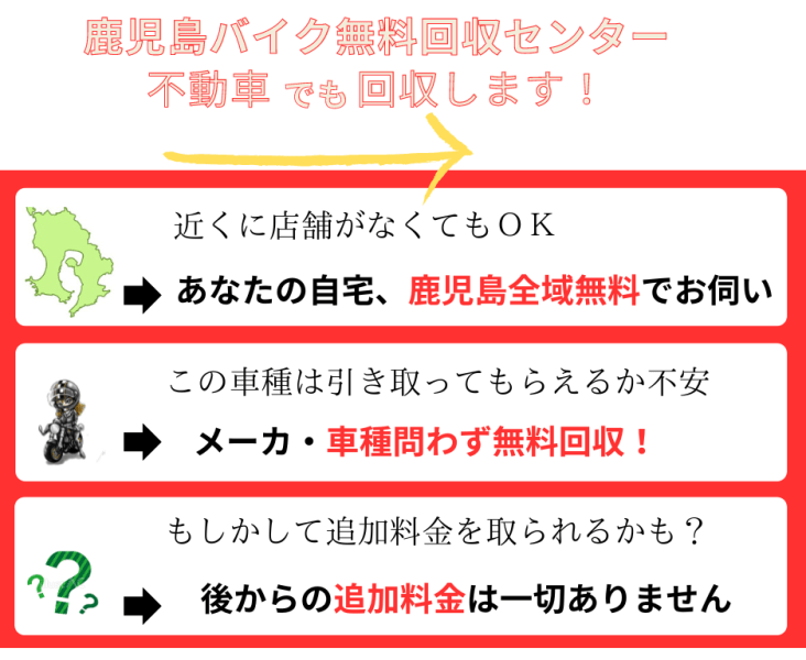 昭和商店ではバイクの処分を鹿児島一円にてこのようなサービスを提供しております。